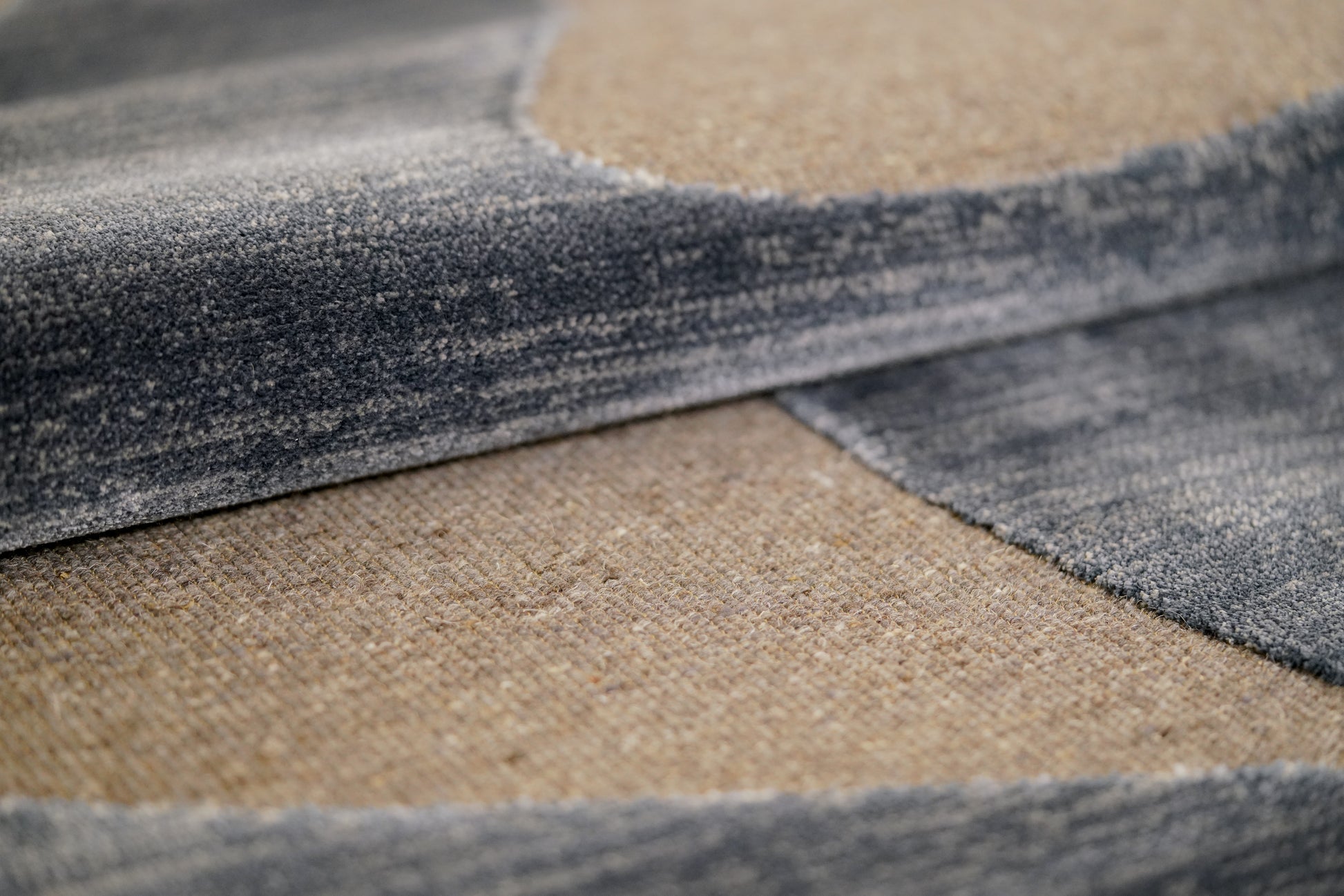 שטיח צמר ויסקוזה תוצרת בלגיה בצבע אפור ואפור מטאלי דגם רותם מגיע ב-3 גדלים: