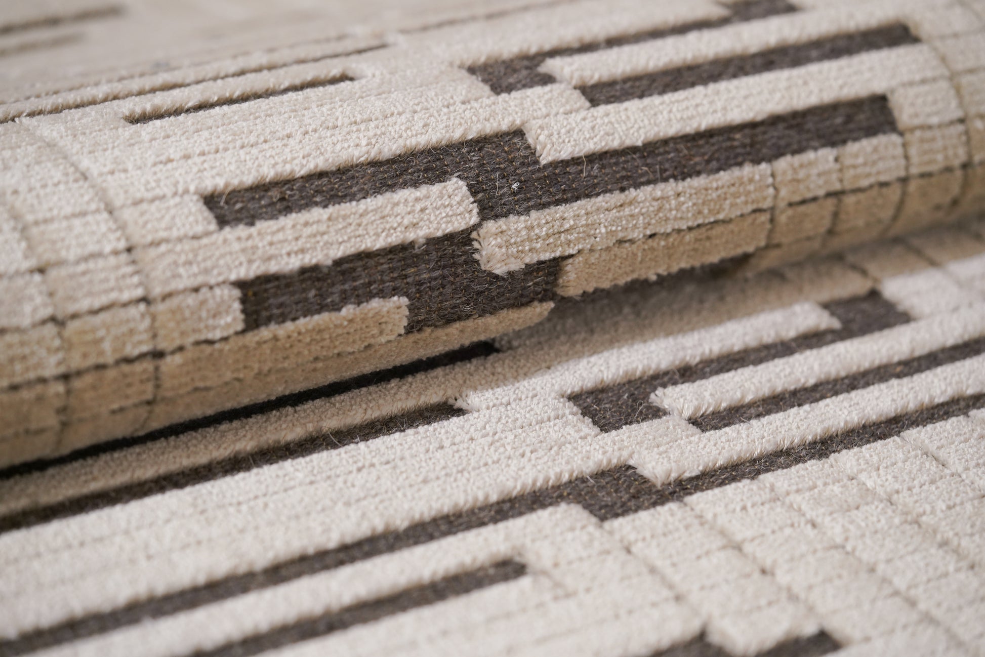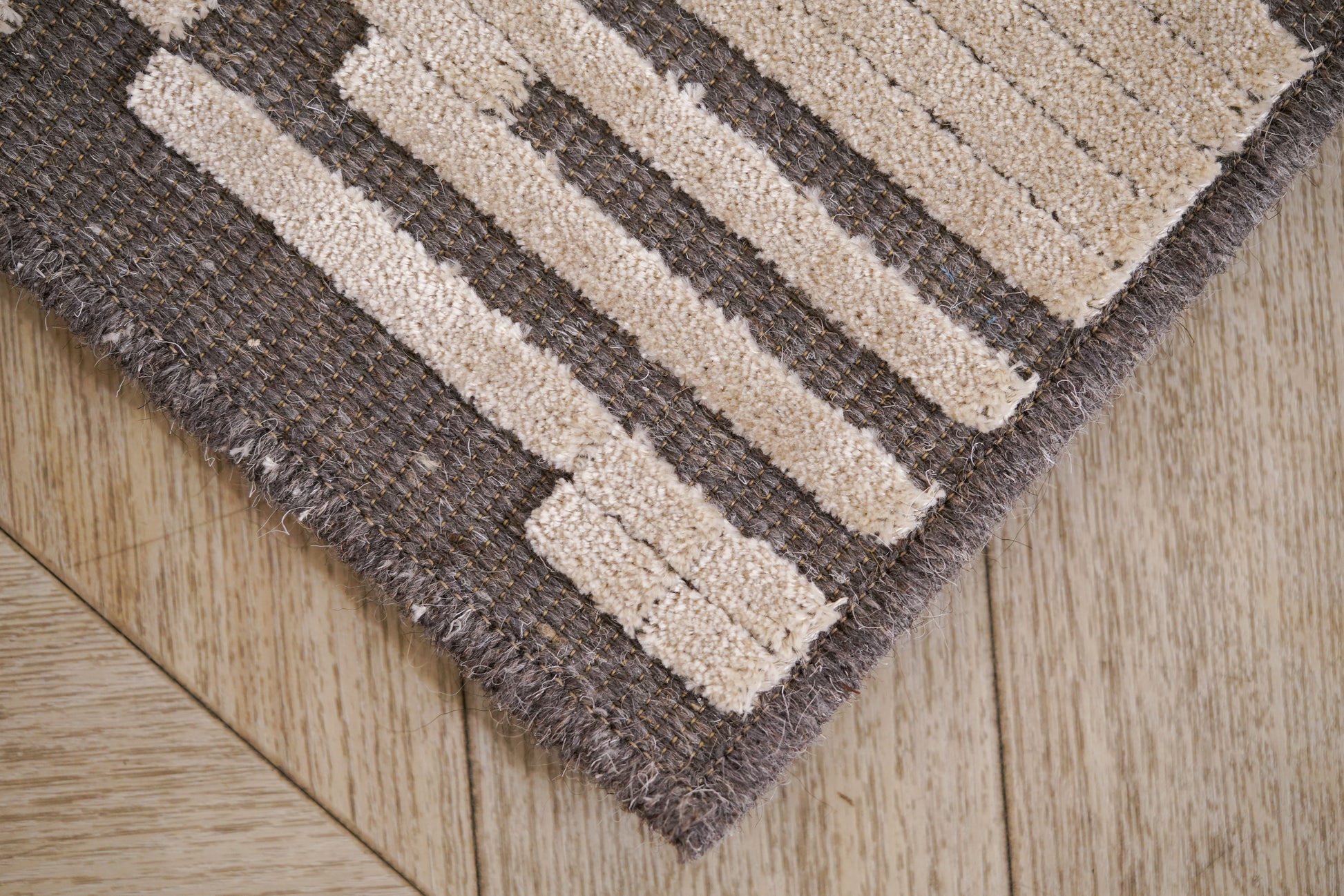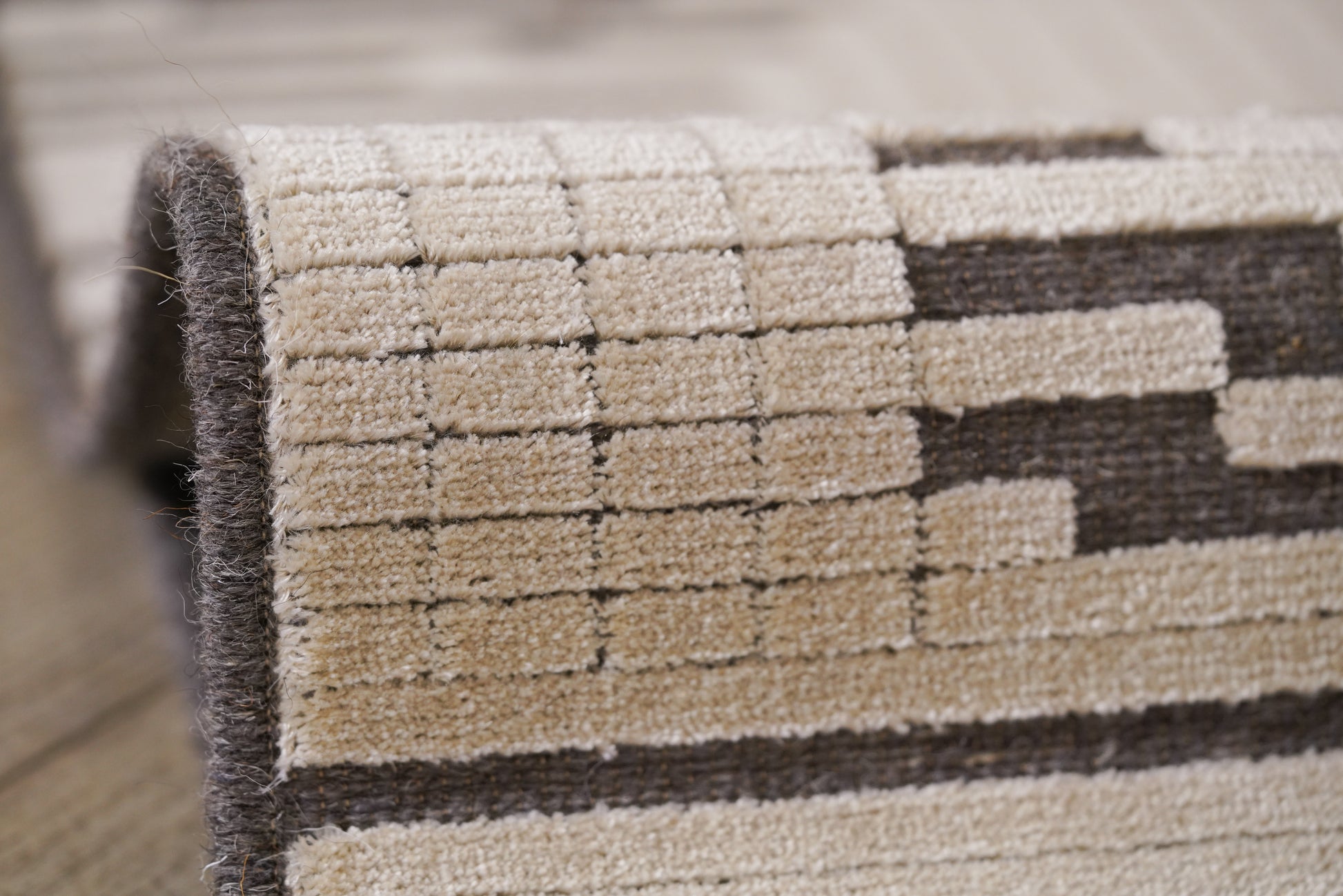 שטיח צמר ויסקוזה שמנת וחום גרייג׳ דגם Kim