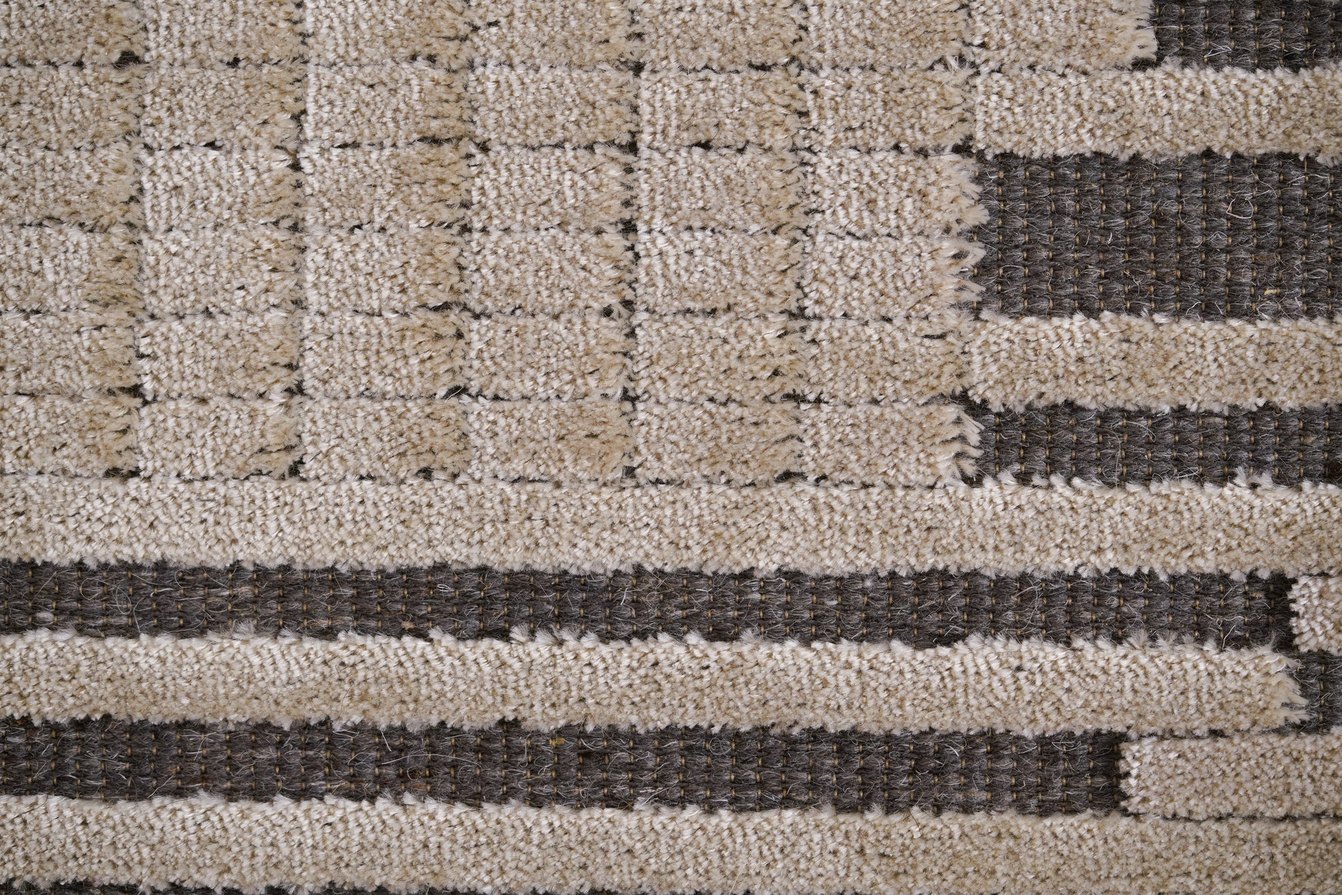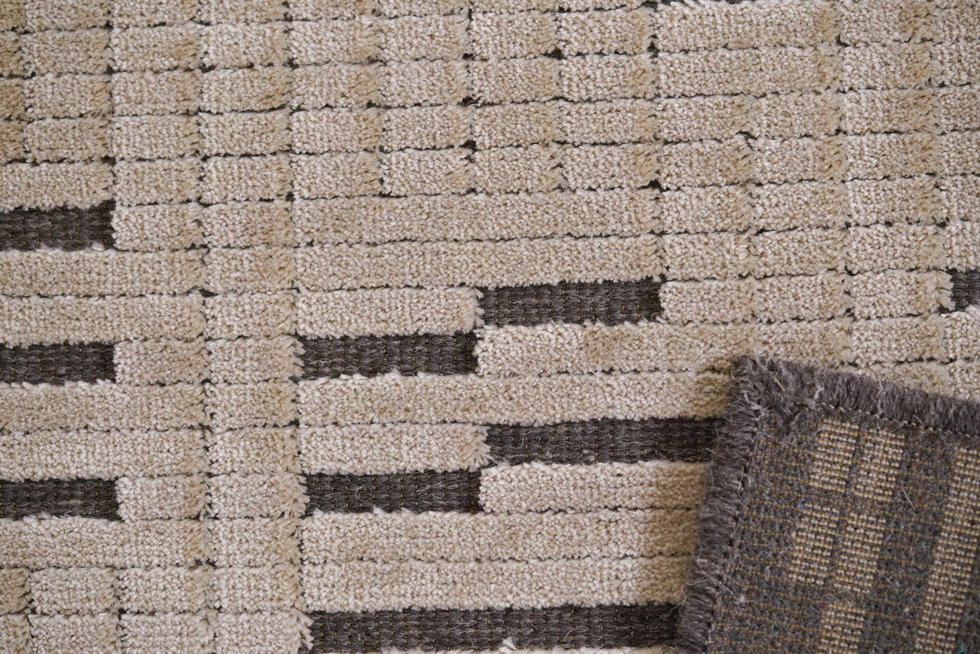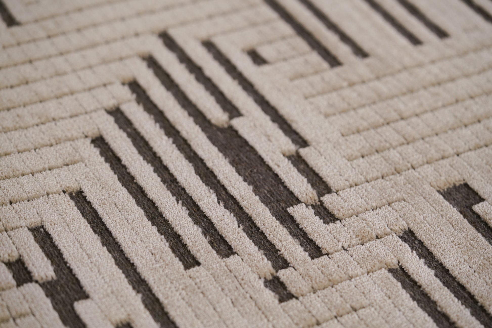 שטיח צמר ויסקוזה שמנת וחום גרייג׳ דגם Kim