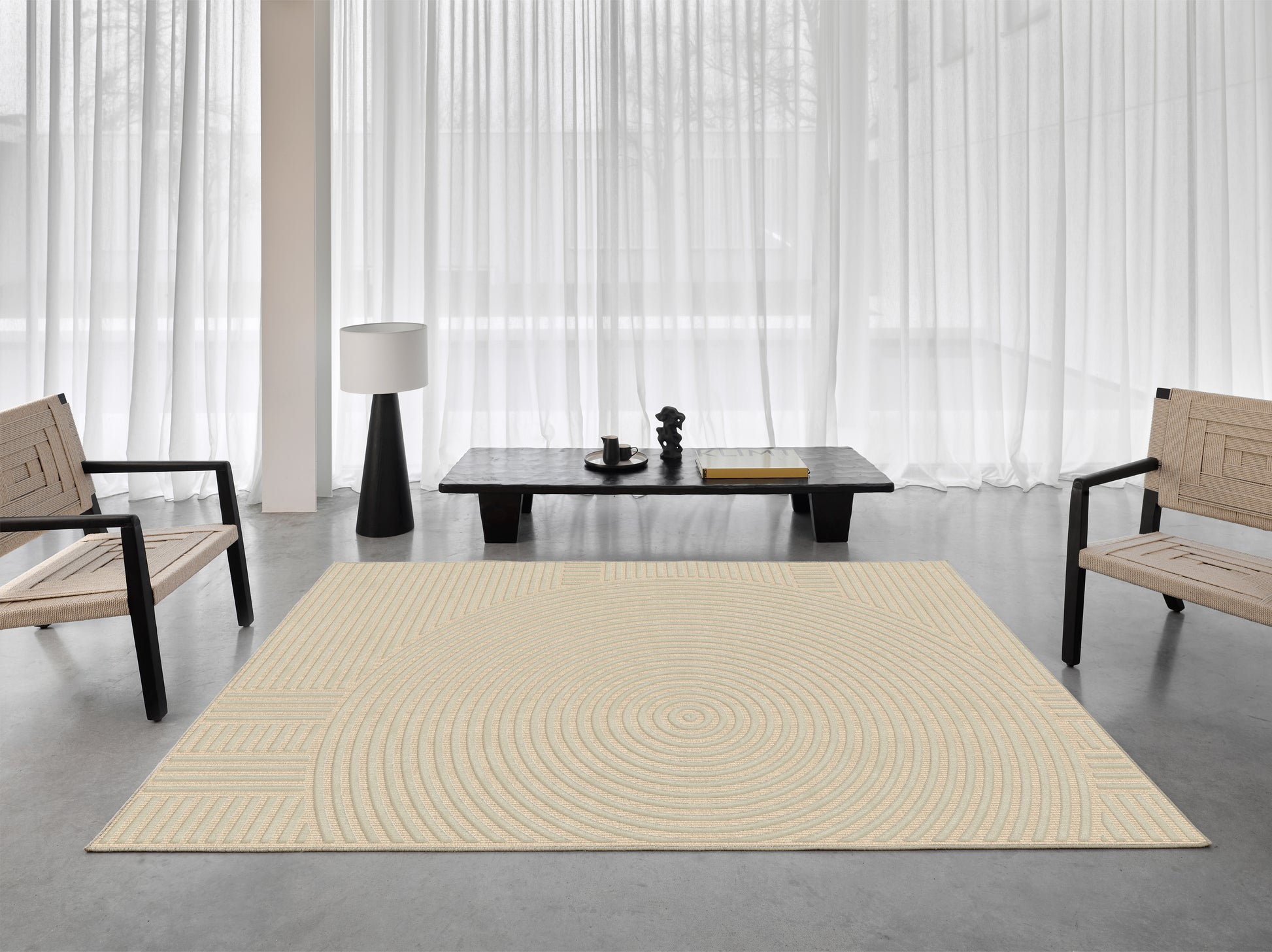 שטיח צמר ויסקוזה שמנת ושחור משי דגם Roni