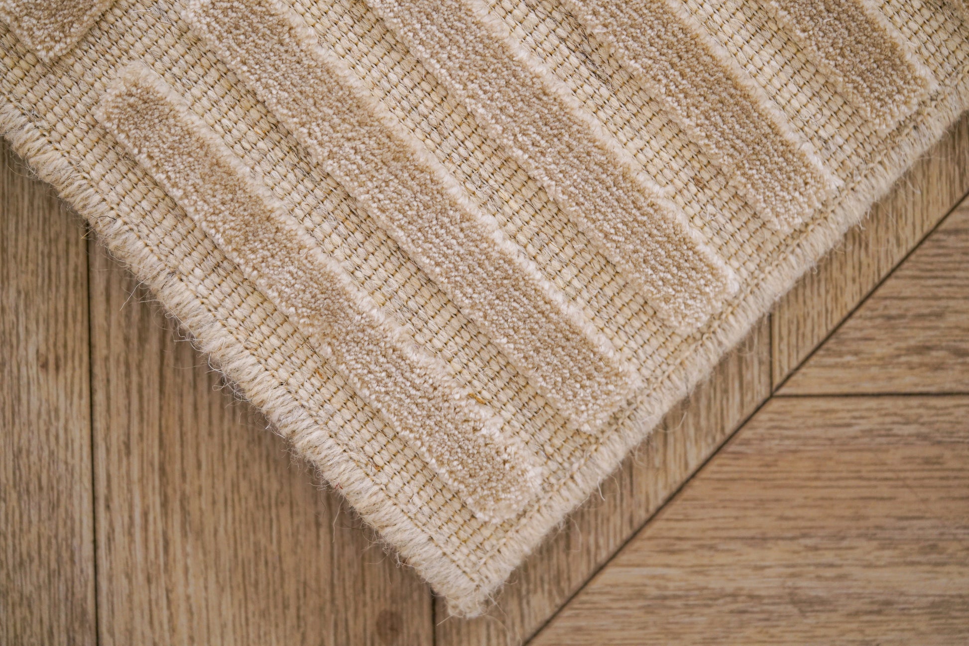 התבלבלות הקצוות מתבצעת באמצעות פוליאסטר, המעניק לשטיח מראה מוצק ובולט.