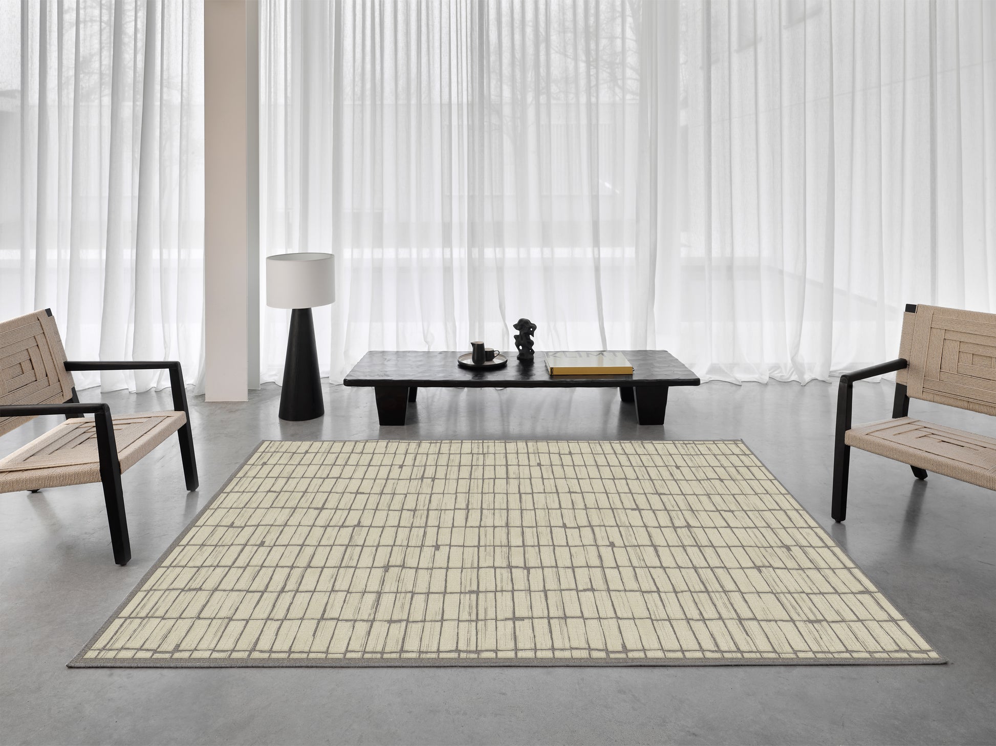 שטיח צמר ויסקוזה שמנת ואפור מטאלי דגם Stephanie