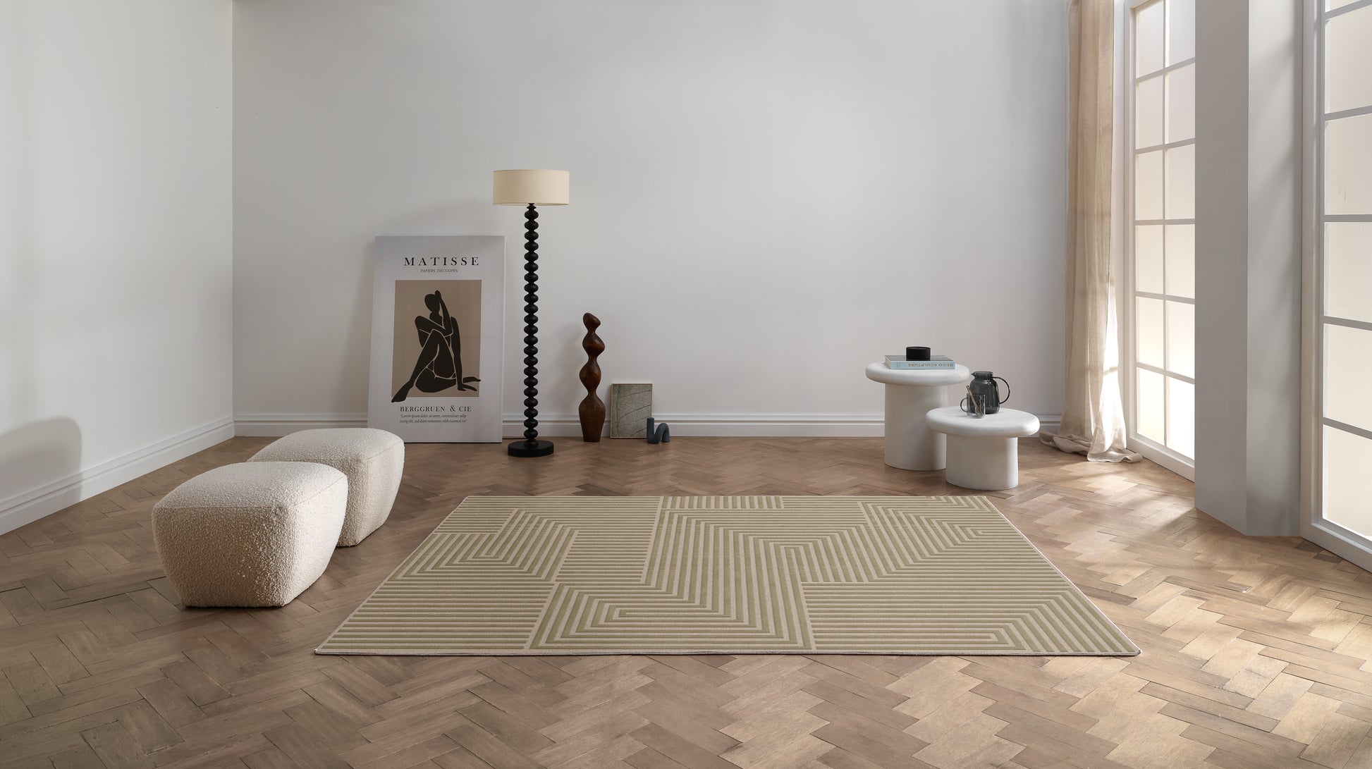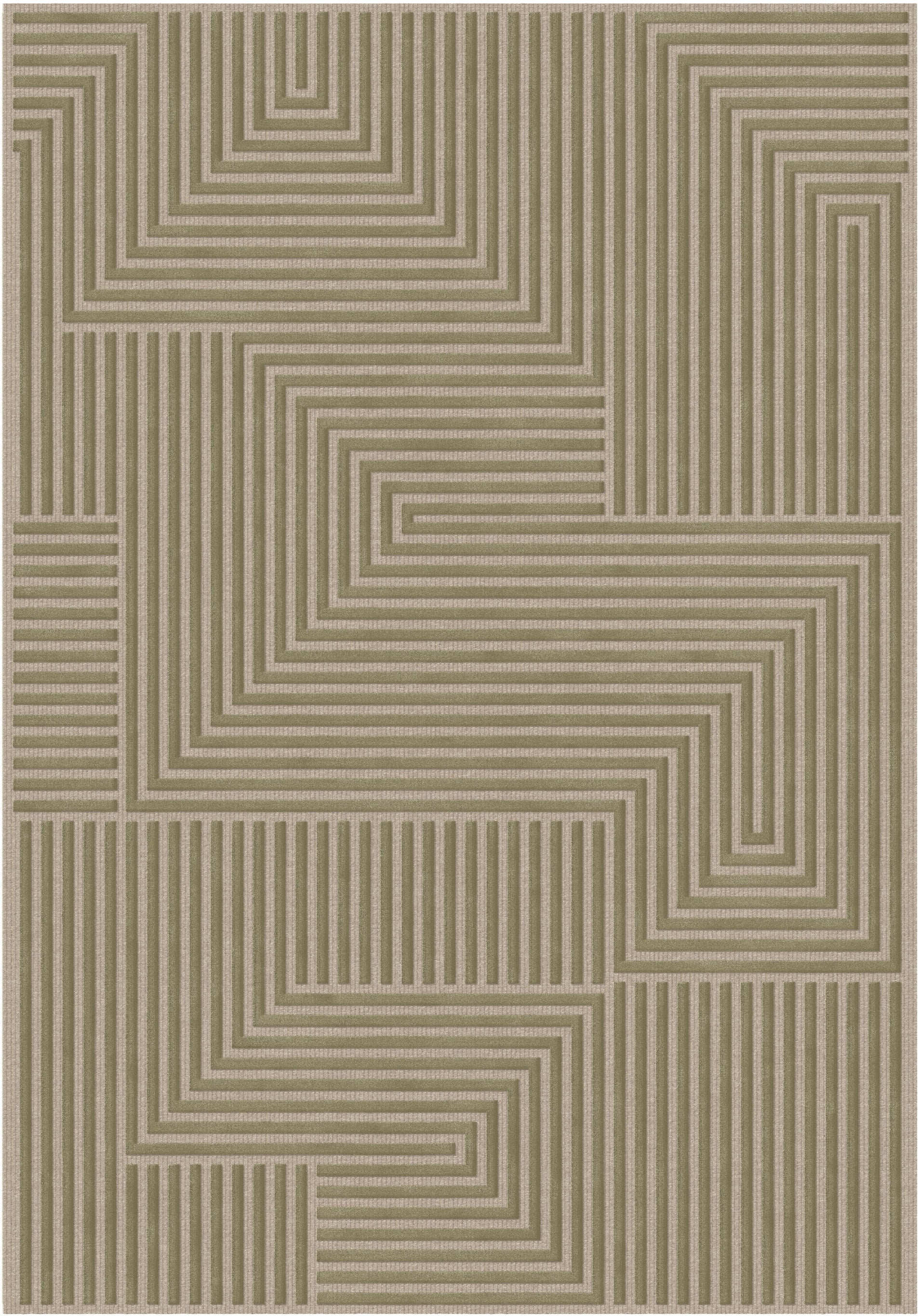 שטיח צמר ויסקוזה בז' וירוק זית דגם Reut