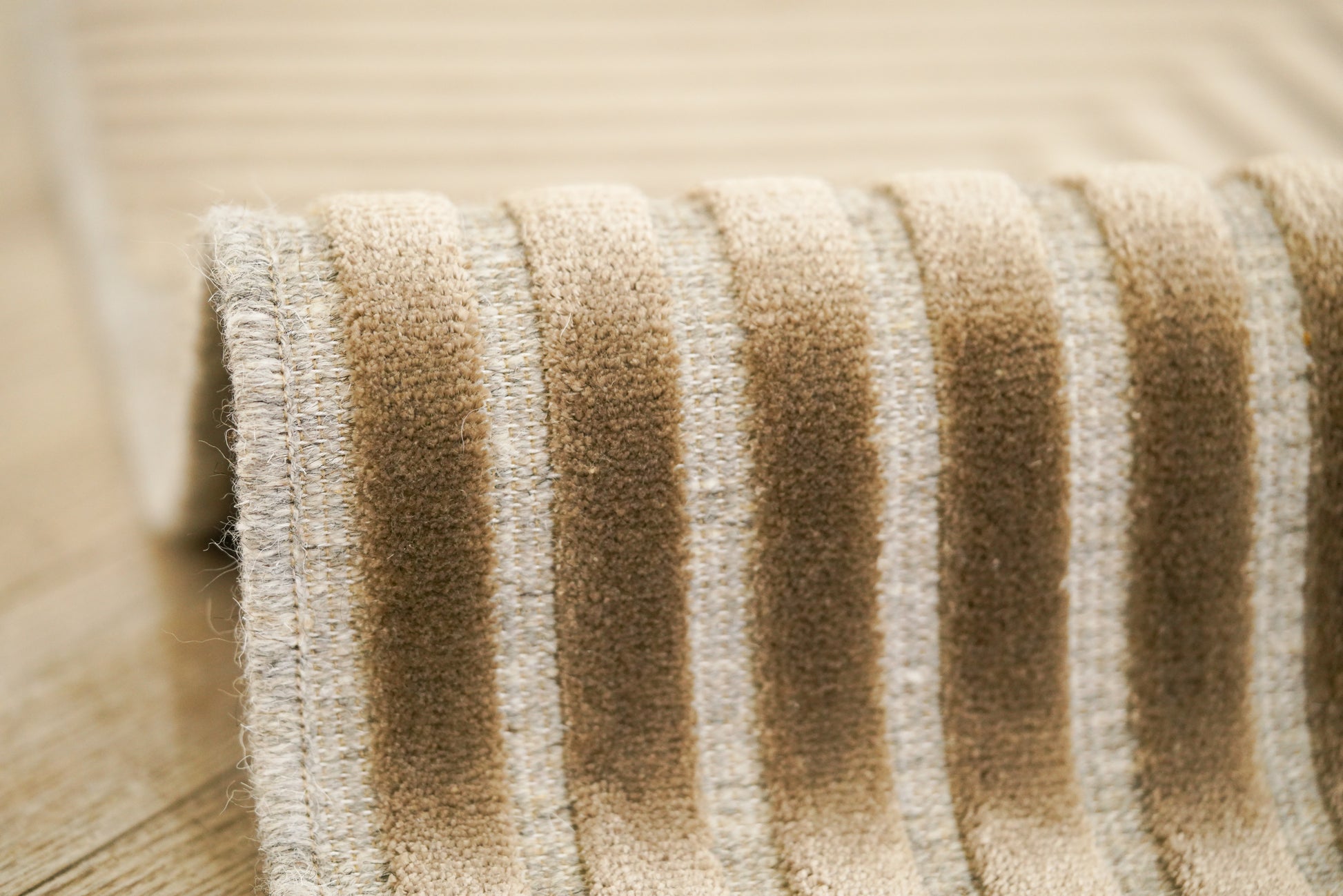 התבלבלות הקצוות מתבצעת באמצעות פוליאסטר, המעניק לשטיח מראה מוצק ובולט.